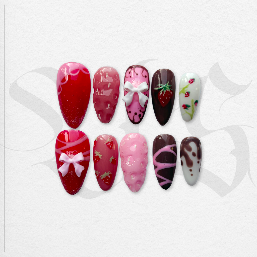 Each Package Includes 10 Hand painted nails, a mini file and nail glue, a mini buffer block, and an orange stick!