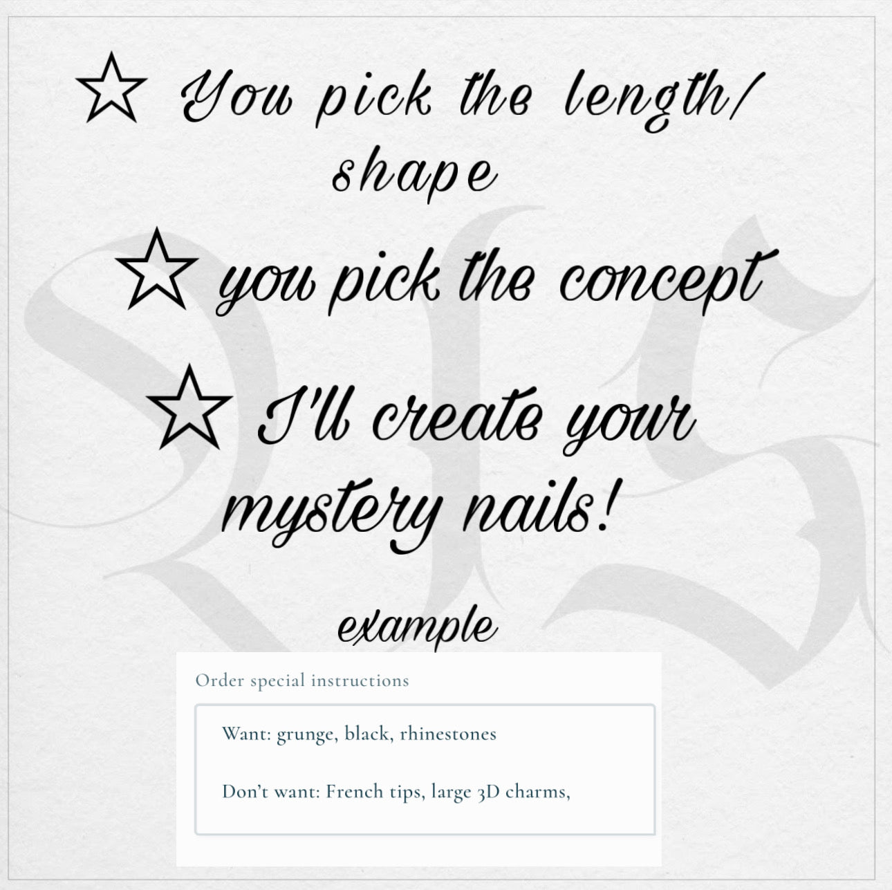 Indecisive about nail designs? Choose our mystery press-on set for a custom, surprise nail experience! ^^